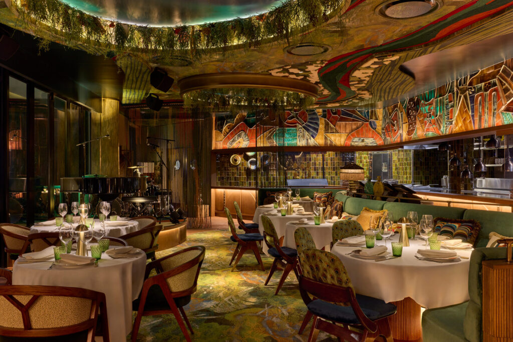 Designed by the renowned Lázaro Rosa-Violán, the Brickell location balances opulence and wilderness in perfect harmony. Rich woods, lush foliage, and golden accents create an atmosphere that feels both exclusive and alive.