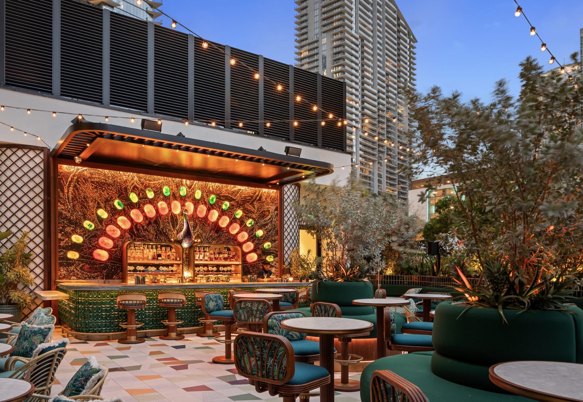 Designed by the renowned Lázaro Rosa-Violán, the Brickell location balances opulence and wilderness in perfect harmony. Rich woods, lush foliage, and golden accents create an atmosphere that feels both exclusive and alive.