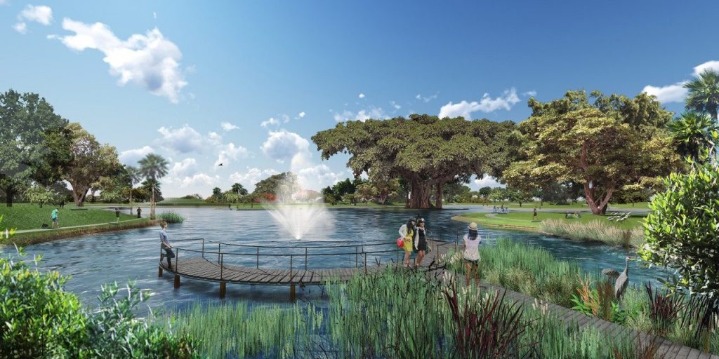 At the heart of the park will be a stunning central lake, surrounded by trails, offering visitors a tranquil space to enjoy serene strolls in a beautiful setting. Additionally, a striking amphitheater will provide the perfect place for residents to gather and enjoy stunning sunsets, making it a true focal point of community engagement.