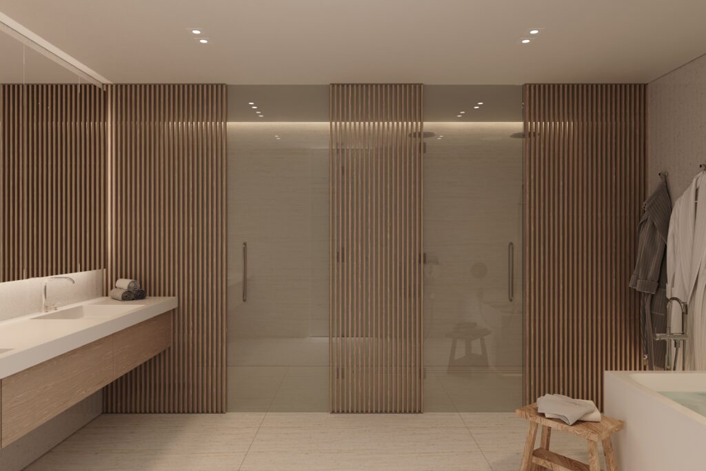 The property embraces the location’s tranquil, natural setting with over 5,000 square feet of tropical gardens and serene water features envisioned by Miami’s celebrated Geomantic Designs. It also includes a 9,000 square foot lushly landscaped rooftop with a Finnish saltwater pool and spa, and a trellis-covered lounge area overlooking the property’s private ten-slip marina and Biscayne Bay. Residents gain access to personalized service and lifestyle amenities including an attended lobby and concierge, state-of-the-art fitness center and wellness spa with sauna and cold plunge, entertainment suite with catering kitchen, children’s playroom, pet-grooming room, electric vehicle charging, and valet.