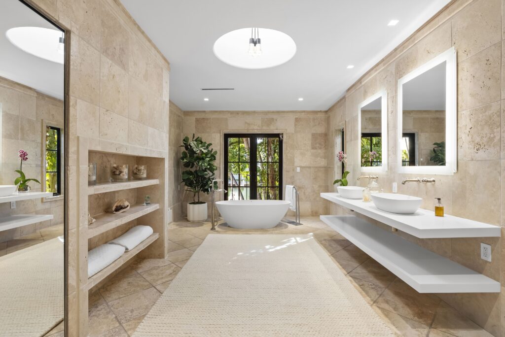 Arched architecture and restored period details nod to The Surf Club’s iconic style, while the interiors embrace coastal blues, soft neutrals, and modern tropical accents. Spanning 4,697 square feet, the five-bedroom, four-and-a-half-bath smart home features a grand gated lanai entrance, a gourmet gas kitchen with dual sinks, a spa-inspired primary suite with steam shower and soaking tub, and a temperature-controlled wine cellar.